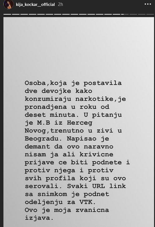 Osim ovog saopštenja, Kija se i našalila na račun ove situacije.