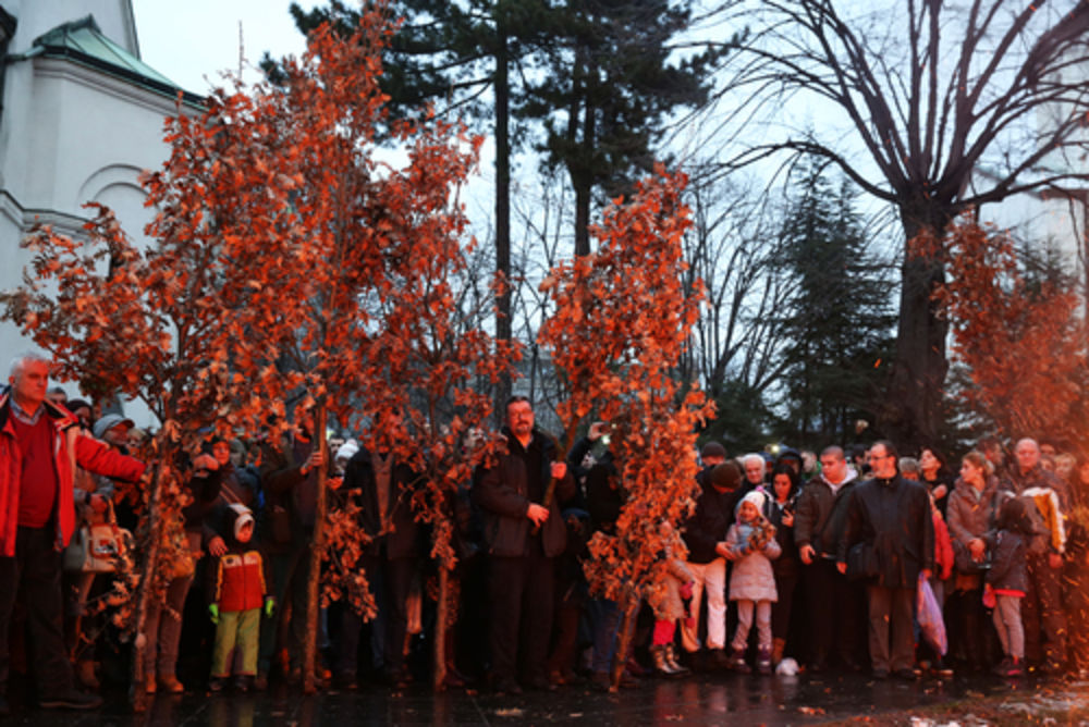 “Gospode Isuse Hriste Bože naš koji si drvo života u raju zasadio da bi nam darovao večno blaženstvo, i koji si grehom našim put u raj zatvorio, i opet milosrđem tvojim na drvetu krsnom ka spasenju priveo i podigao nas koji smo pali; sam i sada blagoslovi ovo drvo u znak krsta tvoga i drveta života i u spomen rođenja tvoga.