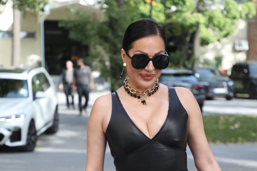 rne visoke potpetice, crne naočare i torba potpuno su se utopili uz kožnu haljinu, a izazovan stajling “razbila” je pozlaćenim lancem koji je nosila oko vrata.