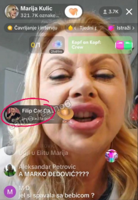 U jednom trenutku na njen lajv priključio se i Filip Car koji joj je poslao virtuelni poklon.