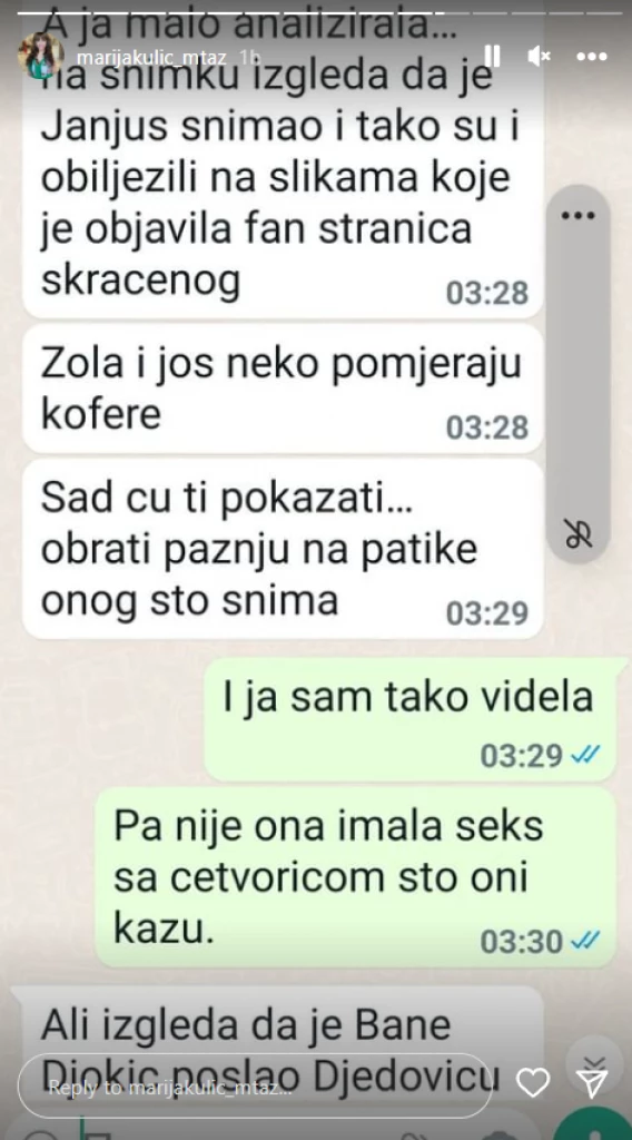 Nakon što se ponovo povela ova tema, oglasila se Marija. Ona je podelila privatnu prepisku sa nepoznatom ženskom osobom, gde analiziraju ovaj snimak.