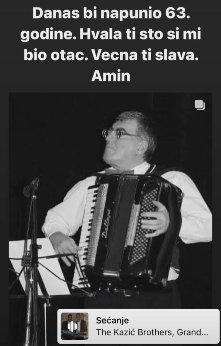 -Danas bi napunio 63. godine. Hvala ti što si mi bio otac. Vječna ti slava. Amin- napisao je Dimitrije uz očevu fotografiju sa harmonikom.