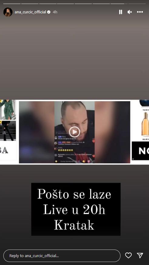 Kako je najavila, bivša zadrugarka Ana Ćurčić je tačno u 20 časova održala “lajv”, putem svog profila na društvenoj mreži Instagram.