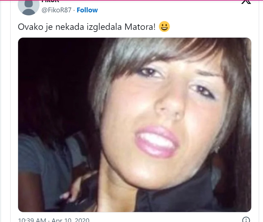 Naime, na internetu osvanula je fotografija kako je Matora izgledala pre nego što je doživela pravu transformaciju.