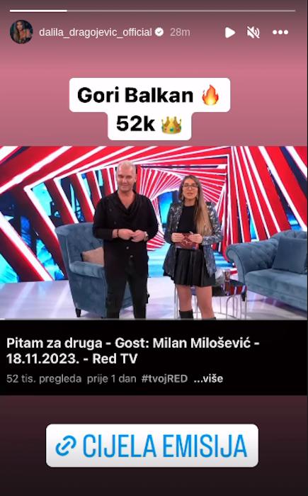Ova emisija je bila vrlo gledana, a snimak koji je olačen na Jutjubu dostigao je gledanost od preko 50.000 gledalaca zbog čega se bivša supruga Dejana Dragojevića javno pohvalila.