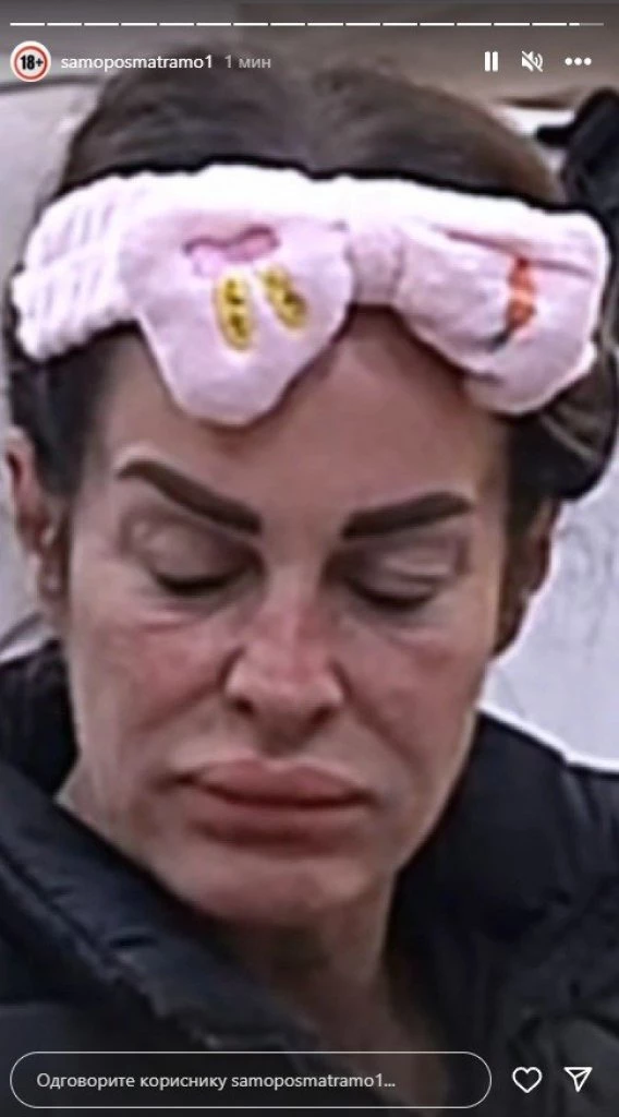 našla za crnim stolom, međutim, kako su pojedini gledaoci mogli da primete, “kuma nacionale” izgleda potpuno drugačije od ulaska u “Elitu” – umesto negovanog, zategnutog lica, ono je sada totalno izdeformisano i nabubrelo.