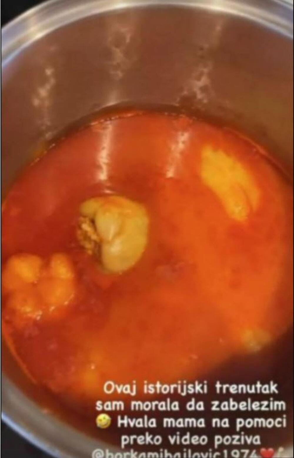 Ona je odlučila da spremi jedno od starih, srpskih, tradicionalnih jela, punjene paprike i pire krompir. Kako bi bila sigurna da će sve ići po planu odlučila je da u pomoć pozove mama Borku.