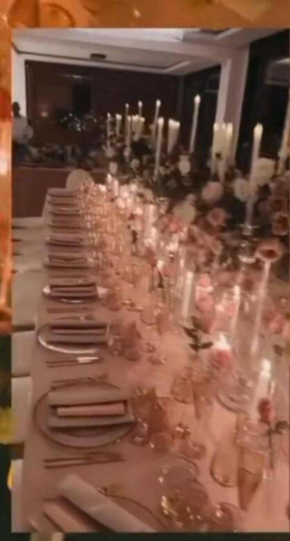 Melina je spremila prelepu večeru za odabrane goste. Roze nijanske krasile su slavljenički sto, koji je imao grandiozne cvetne aranžmane i kristale.