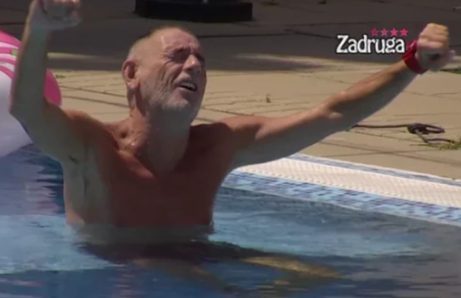 Međuitim, mladi Stanić nije tako vičan sportskim aktivnostima na otvorenom, kao vremešni pevač, ali je rešio da skoči u hladan bazen, kako bi do suza nasmejao cimere.
