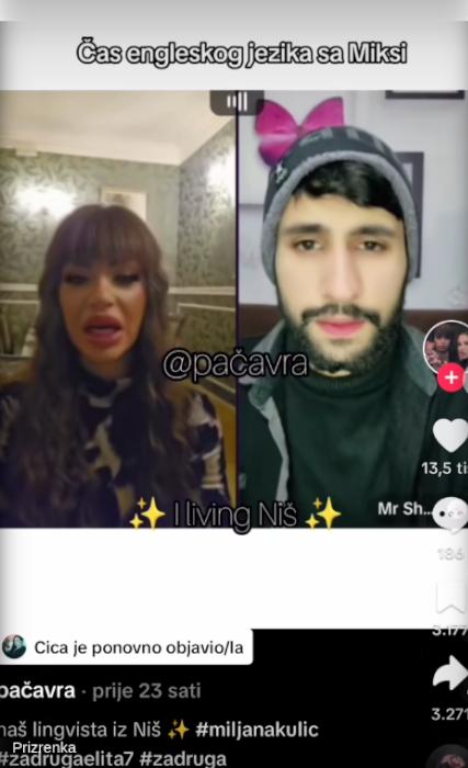 Ona se redovno uključuje uživo na društvenoj mreži Tik Tok, a vrlo često za vreme prenosa pridružuju joj se i ostali korisnici mreže. Sada je Miljana bila u neviđenom izdanju kada joj se u prenosu priključio stranac, a ona je predstavila svoje veštine govora engleskog jezika.