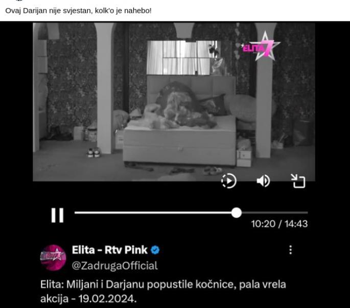 – Darjane, sad ne možemo vreme da vratimo nazad! Bilo je šta je bilo, ali je meni bilo lepo! To je najvažnije. Bolje da mi dete napraviš ti u rijalitiju neko neki kockar napolju – pričala je Miljana kroz smeh, aludirajući najverovatnije na bivšeg dečka Lazar Čolića Zolu, koji je u spoljnom svetu i koji sve ovo prati.