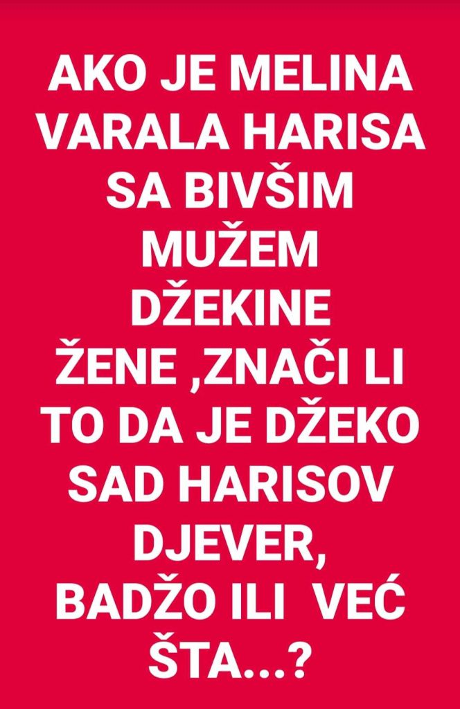 -Ako je Melina varala Harisa s bivšim mužem Džekine žene, znači li to da je Džeko sad Harisov djever, badžo ili šta već – našalili su se na društvenim mrežama.