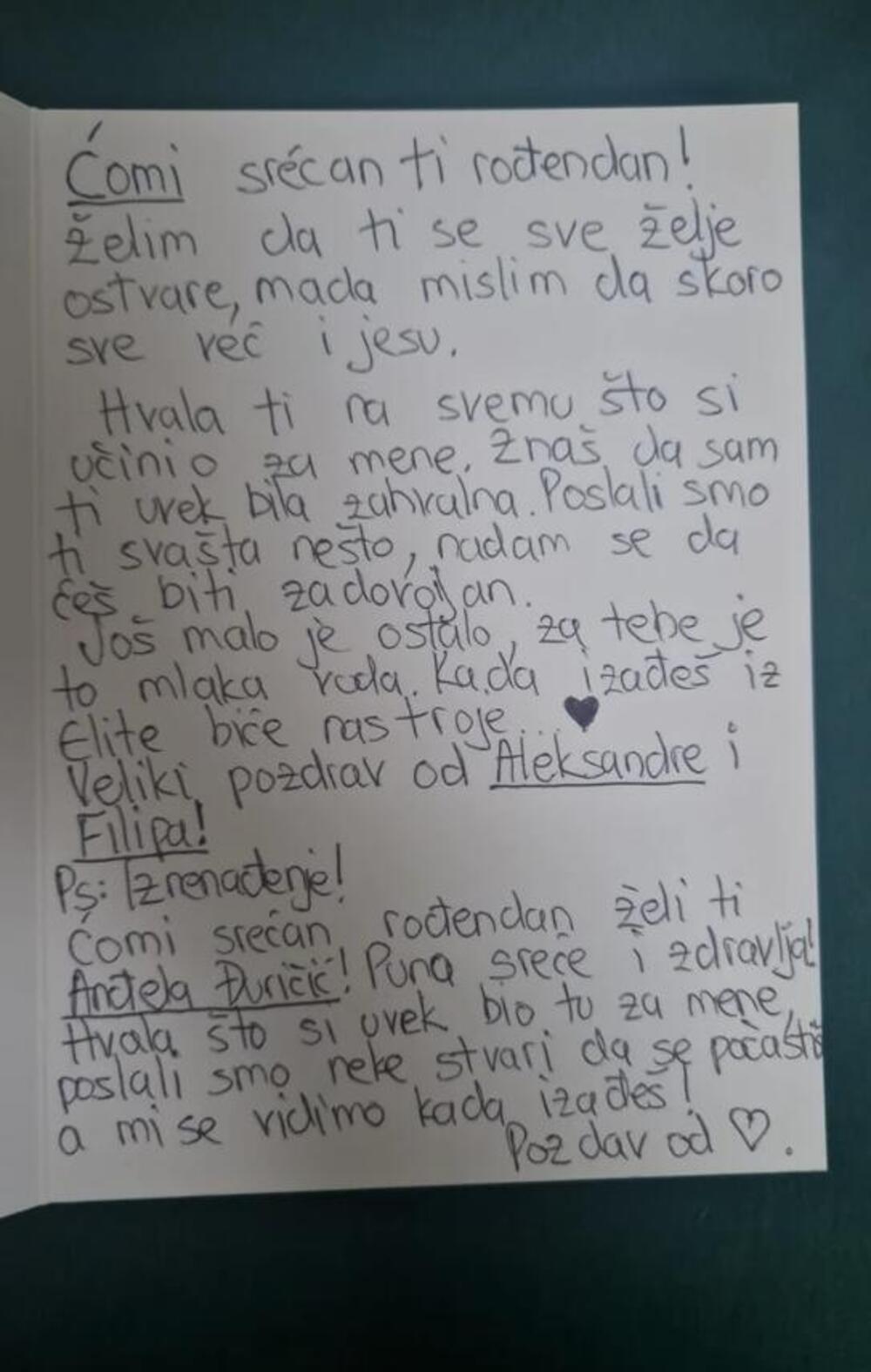 Pored njih rođendan mu je čestitala i Anđela Đuričića koja mu je rekla da joj je drago što je uvek bio uz nju.