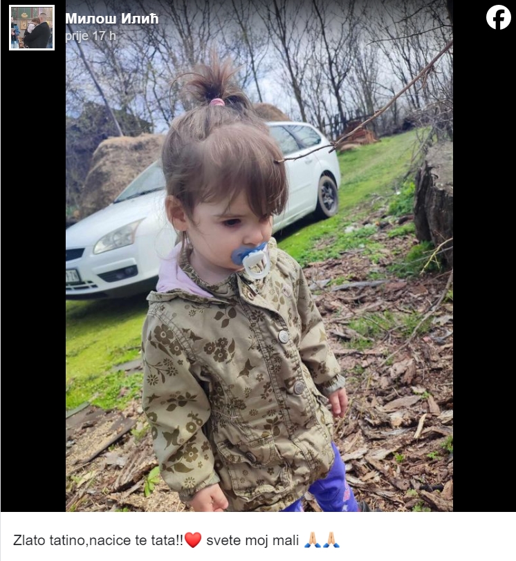 Otac male Danke, Miloš Ilić, oglasio se na društvenoj mreži Fejsbuk potresnim rečima. “Zlato tatino, naći će te tata. Svete moj mali”, napisao je otac devojčice.