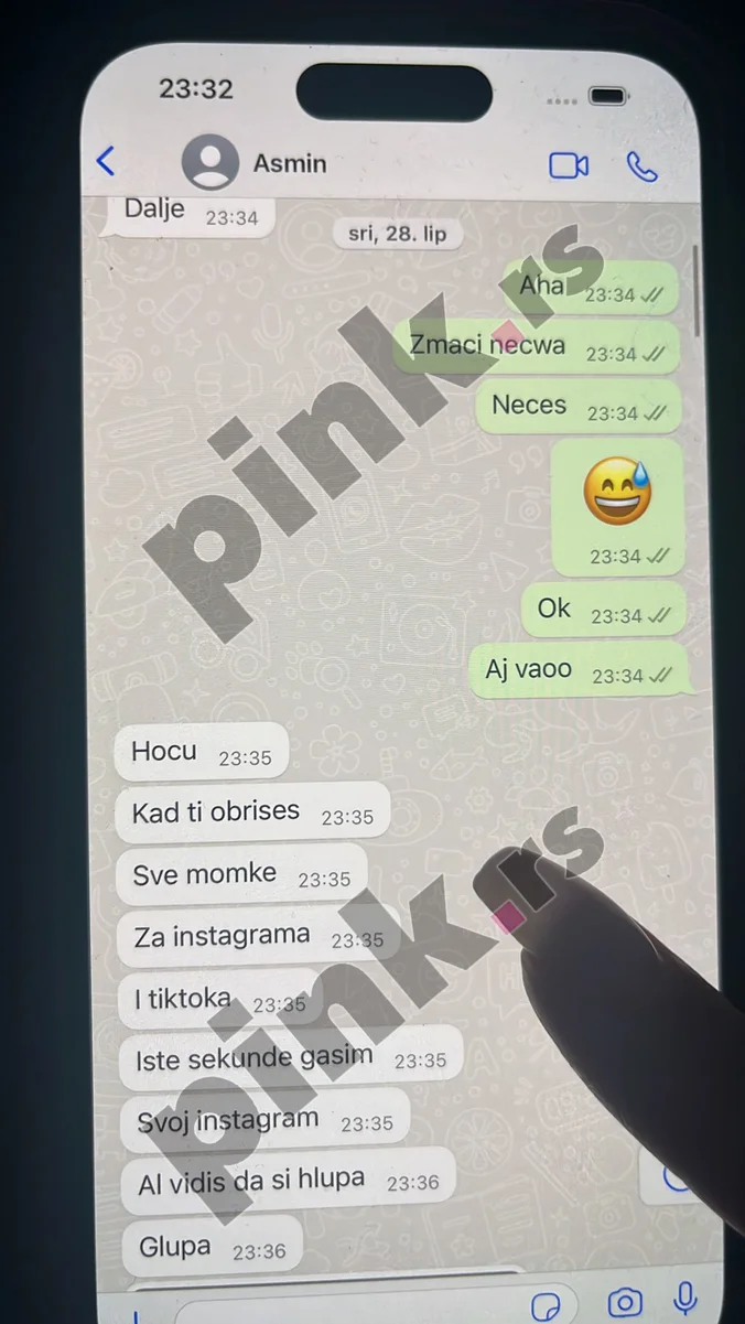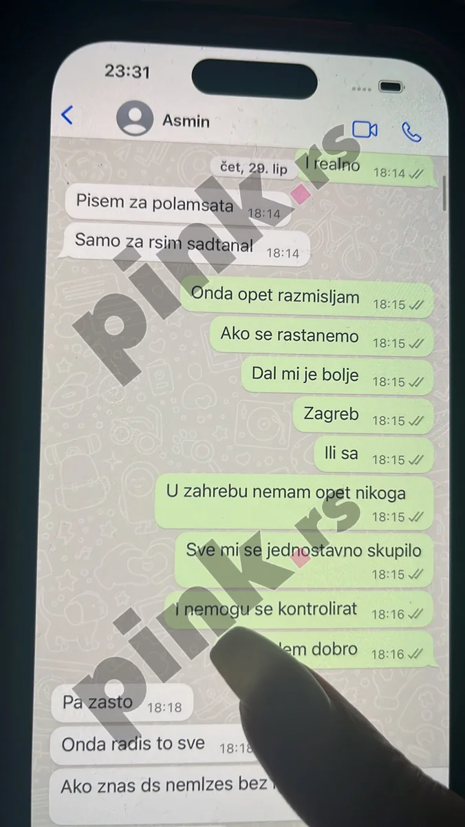 Portal Pink.rs došao je u posed ekplicitnih poruka koje je Asmin Durdžić slao Aneli Ahmić 28. juna ove godine, a na kojima masturbira i doziva je, dok leži na krevetu svoje devojke Stanije Dobrojević.