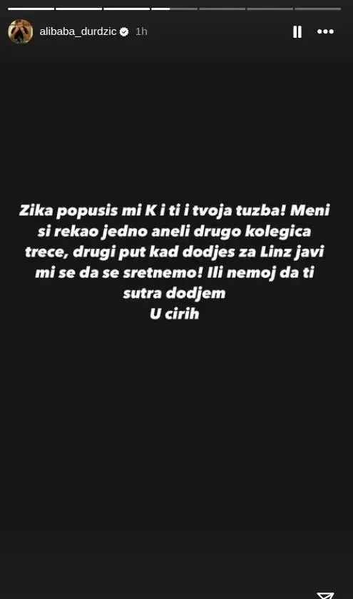 Nakon što je Žika dao izjavu, Asmin je odmah okačio stori na svom Instagram profilu.