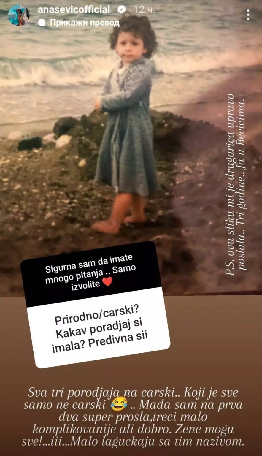 Za to vreme, svojim pratiocima na Instagramu rekla je da joj postavljaju pitanja, na koja im je davala odgovore, ali uz odgovore imali su priliku da vide i neke fotografije, a jedna stara fotografija Ane Sević naročito je sve oduševila