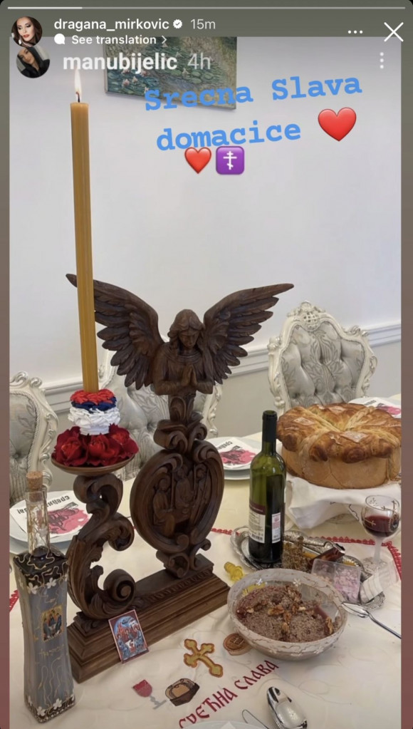 Ona se takođe oglasila na Instagramu, uz fotografiju slavske trpeze na kojoj pored već pomenutog sadržaja vidimo žito i vino, a tu je i čestitka: “Srećna slava, domaćice”.