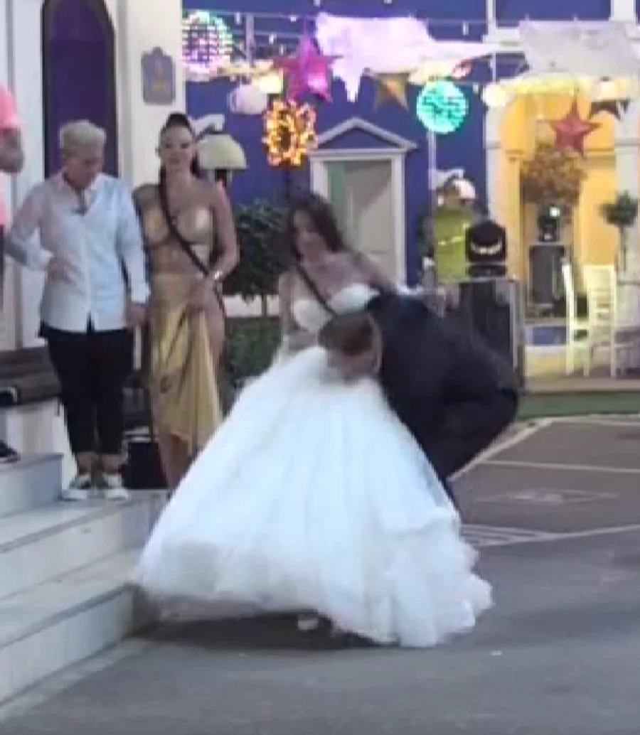 Kada ju je preveo preko praga, ona je bacala sito u visinu. Ša je odmah počeo da dobacuje Mioni da ima bube po venčanici, želeći da uništi trenutak.