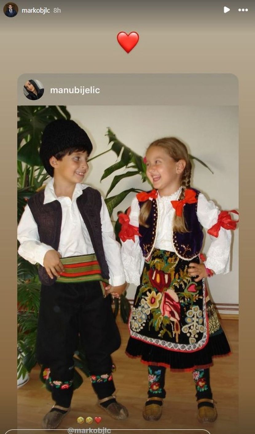 Manuela je sada objavila na svom Instagramu uspomenu iz detinjstva sa bratom Markom, gde poziraju u narodnoj nošnji, a na nogama su imali opanke.