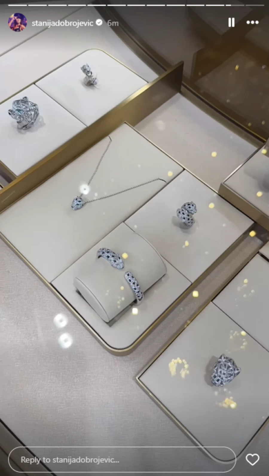 Na storiju društvene mreže Instagram je svima pokazala koliko uživa u luksuzu. U njenim “pričama” mogli su se videti skupe torbe i nakit, kao i gala restoran koji je posetila sa, makar za sada, osobom nepoznatom javnosti. Ono što se da primetiti, jeste da takođe voli roze boju koja je Stanijin zaštitni znak, kao i da imaju sklonost ka skupom nakitu i šopingu.