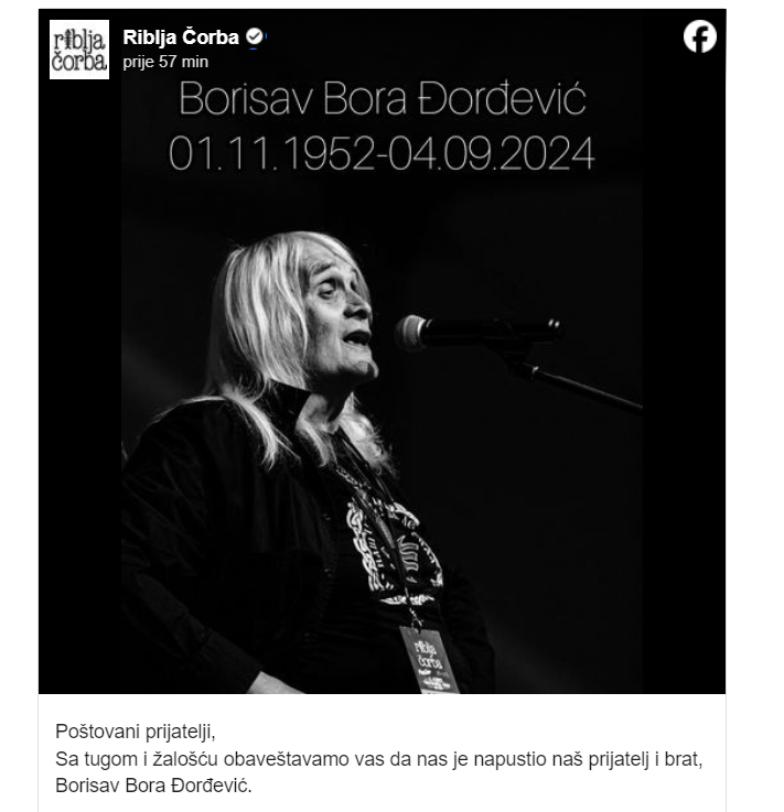 01.11.1952- 04.09.2024 – piše u objavi u kojoj se od Bore opraštaju menadžer i članovi benda.