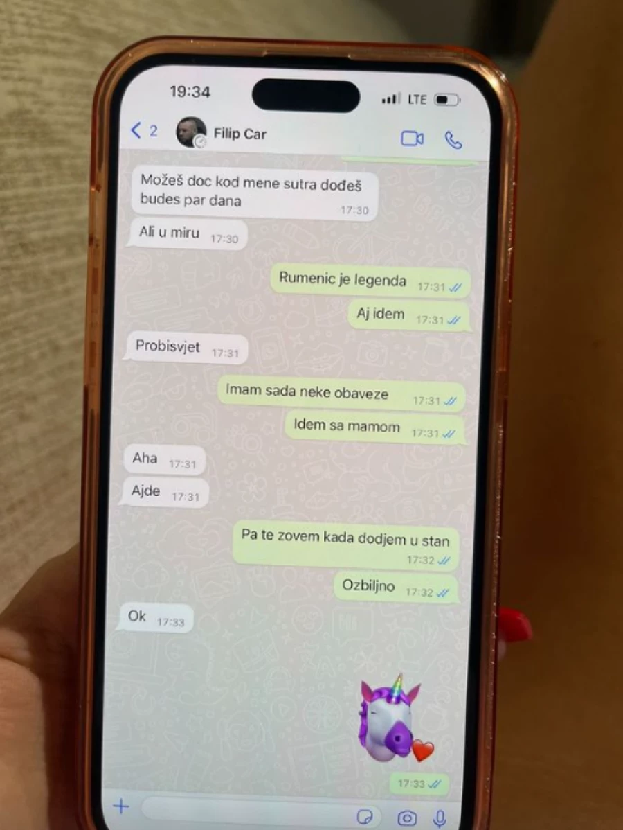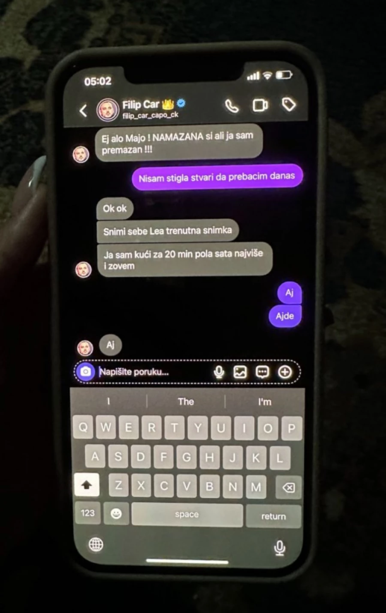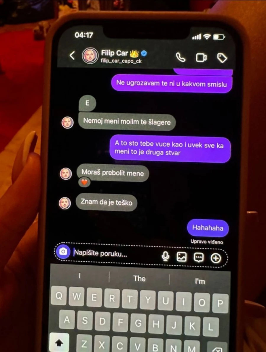 Od besa nije mogla da razmišlja, sigurna je bila da ju je Filip više puta prevario, vrištala je na sav glas: “Iskoristio si me zbog popularnosti, kako sam glupa”. Car je tvrdio da to nije istina, međutim situacija je eskalirala i došlo je do tuče i svega u šta je javnost već upućena. Sad se sve malo stišalo, ali pitanje je koliko će trajati dok ponovo ne dođe do haosa.