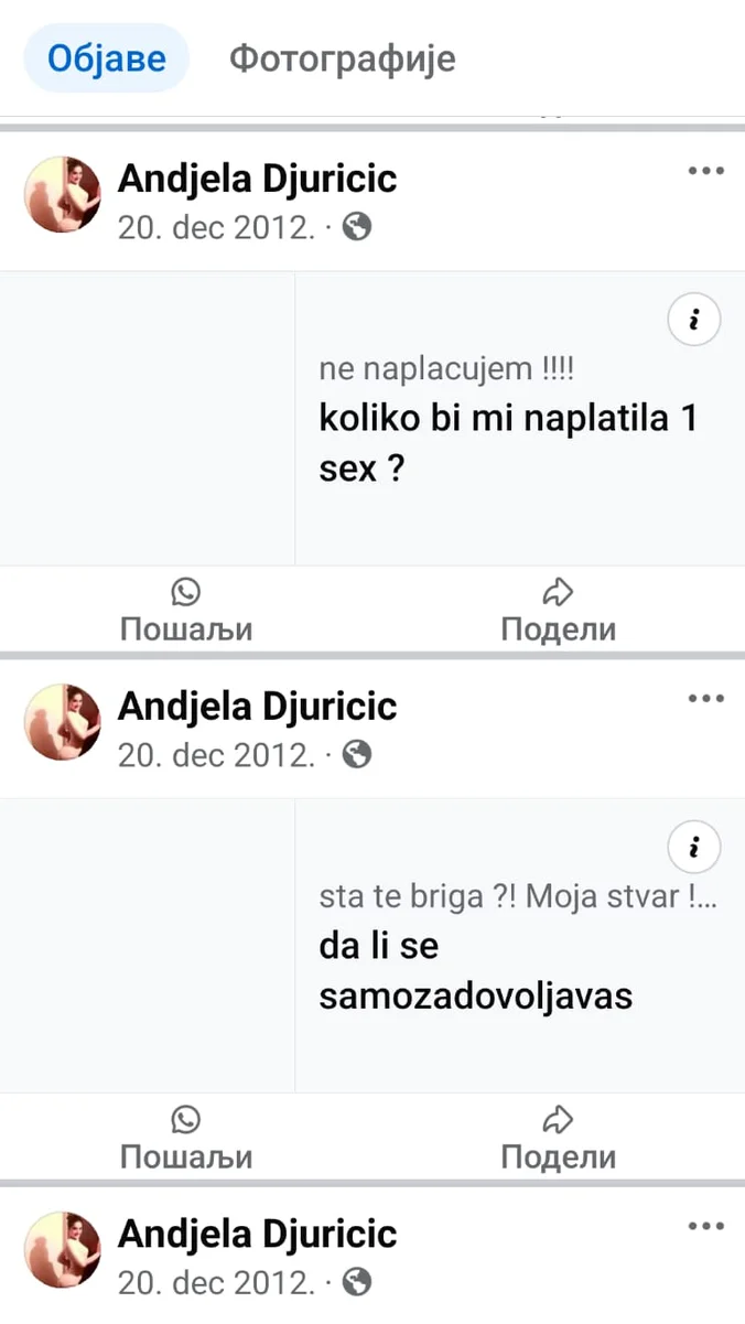 Naime, kako se može videti, neko ju je upitao: “Koliko bi mi naplatila za s*ks?”, ona je odgovorila da za to ne naplaćuje, a nakon toga, ono što je svima zapalo za oko, jeste njen odgovor na pitanje: “Da li bi mi dala p**ke?”, ona je odgovorila: “Možda”.