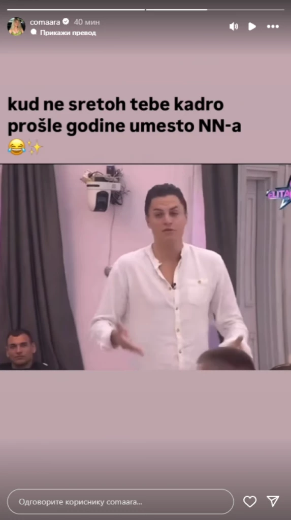 Međutim, izgleda da je Veličkovićevoj ovo Kadrićevo izlaganje prijalo, jer je na društvenim mrežama podelila deo njihovog sukoba uz komentar kojim je izrazila žaljenje što prošle godine nije upoznala Kadru umesto svog sada već bivšeg verenika.