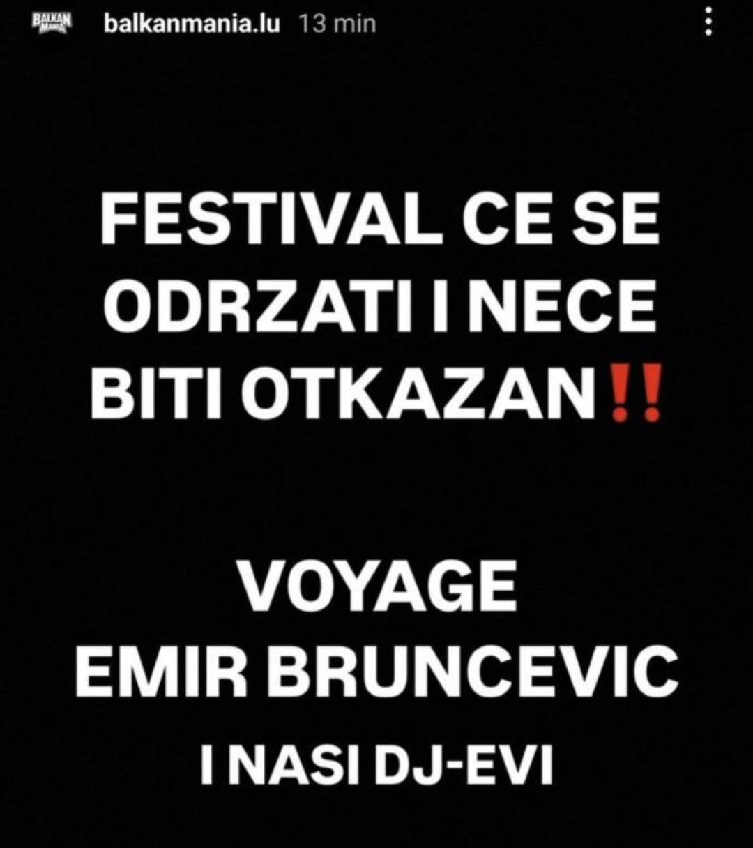 Festival će se održati i neće biti otkazan! Milica Pavlović je otkazala njen deo nastupa za večeras – napisali su organizatori na Instagramu, a onda su tokom noći i jučerašnjeg dana objavili i snimke Vojaževog performansa, iako je on tražio da se snimci ne kače, kako, očekivano, ne bi izazvao gnev javnosti, što se i desilo.