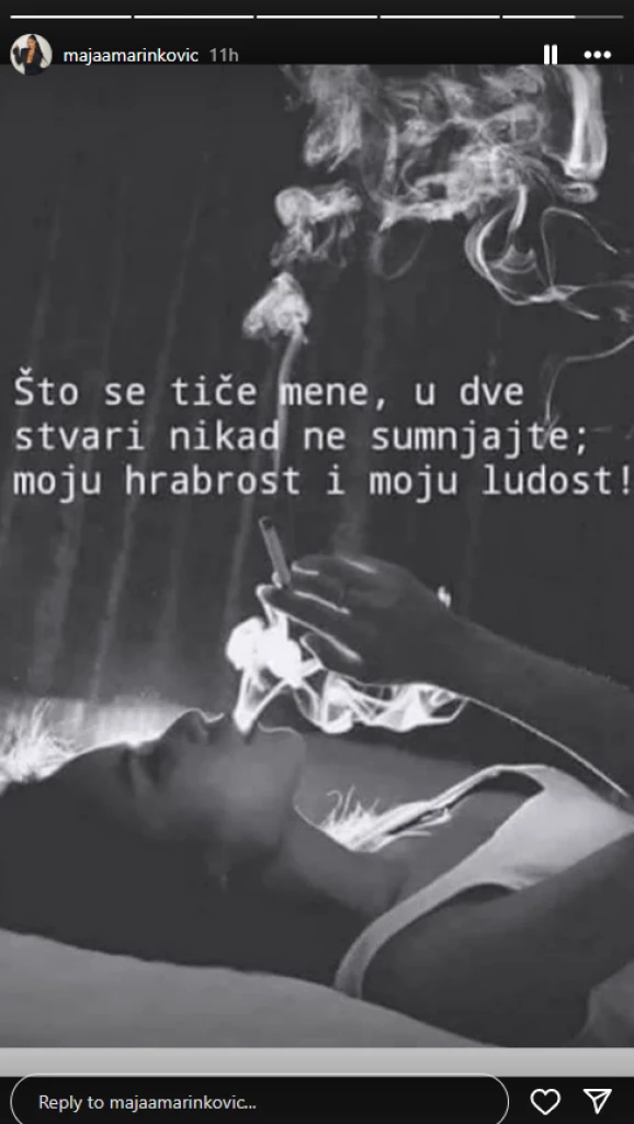 – Što se tiče mene, u dve stvari nikad ne sumnjajte: Moju hrabrost i moju ludost! – glasila je poruka na profilu Maje Marinković.