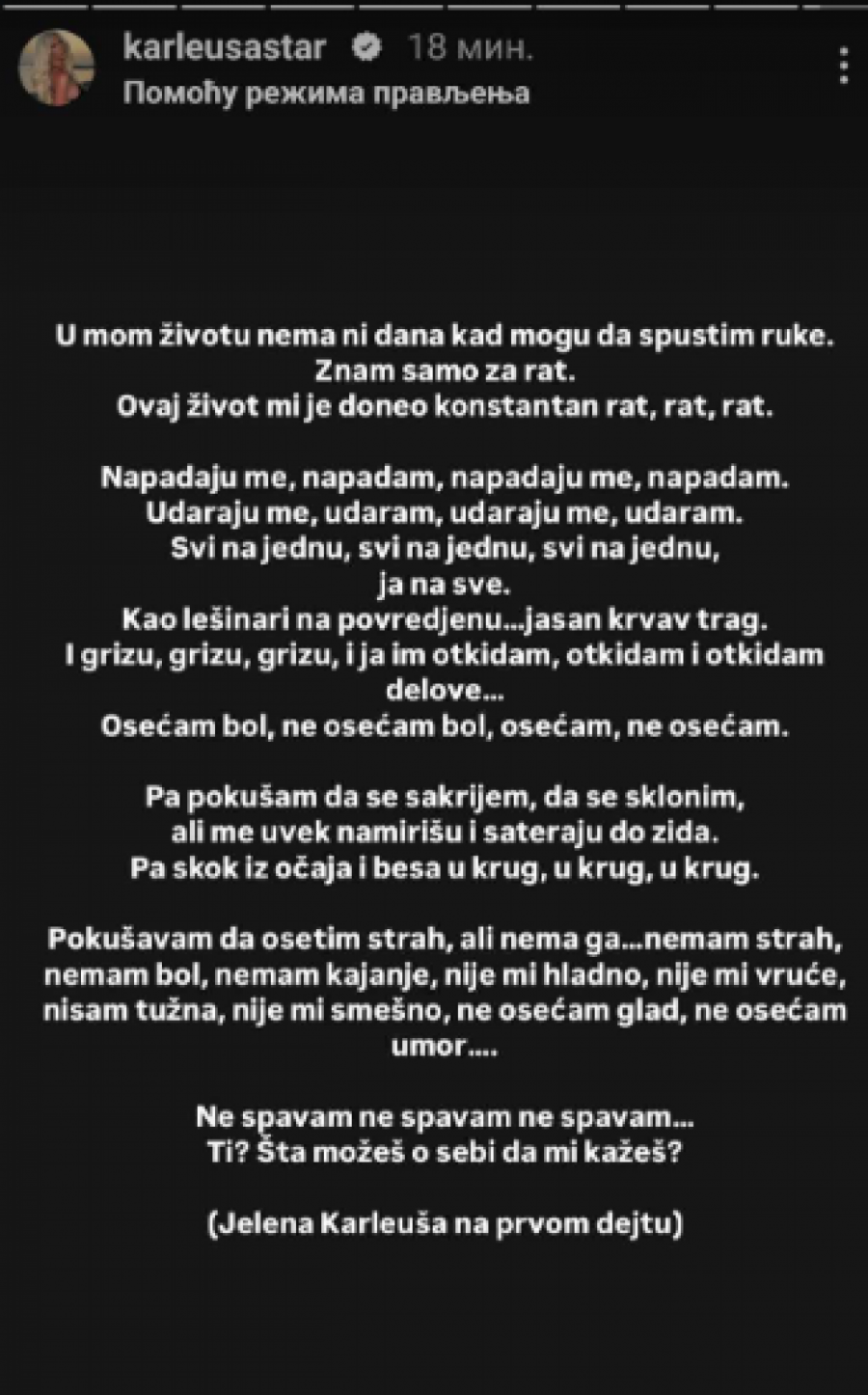 Nakon direktonog obraćanja Maci, Karleuša je na društvenoj mreži priznala sa čime se godinama suočava.