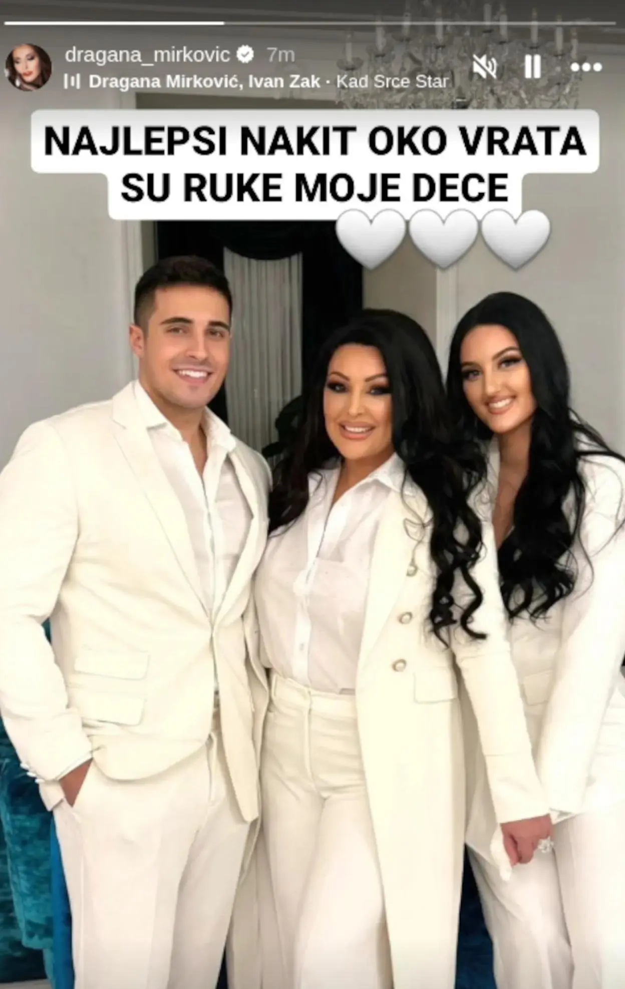 Dragana, Marko i Manuela Bijelić pozirali su odeveni u belo, s iskrenim osmesima na licu, a folk diva je istakla uz tri bela srca: