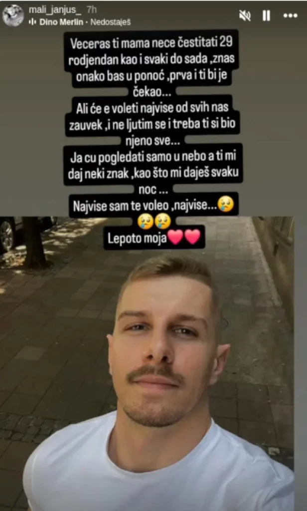 – Lepoto moja, sutra bi napunio 29 godina – napisao je Janjuš i dodao emotikone koji plaču.