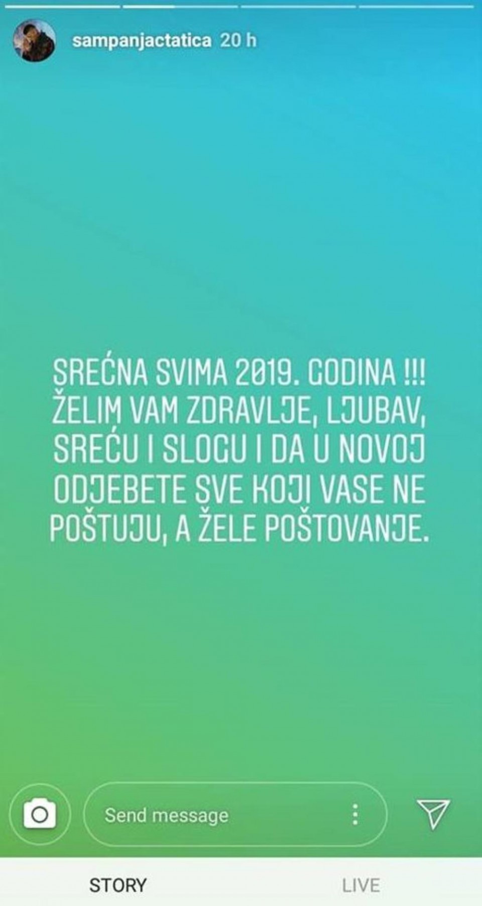 “Srećna svima 2019. godina! Želim vam zdravlje, ljubav, sreću i slogu i da u novoj od*ebete sve koji vaše ne poštuju, a žele poštovanje”, bio je konkretan on.